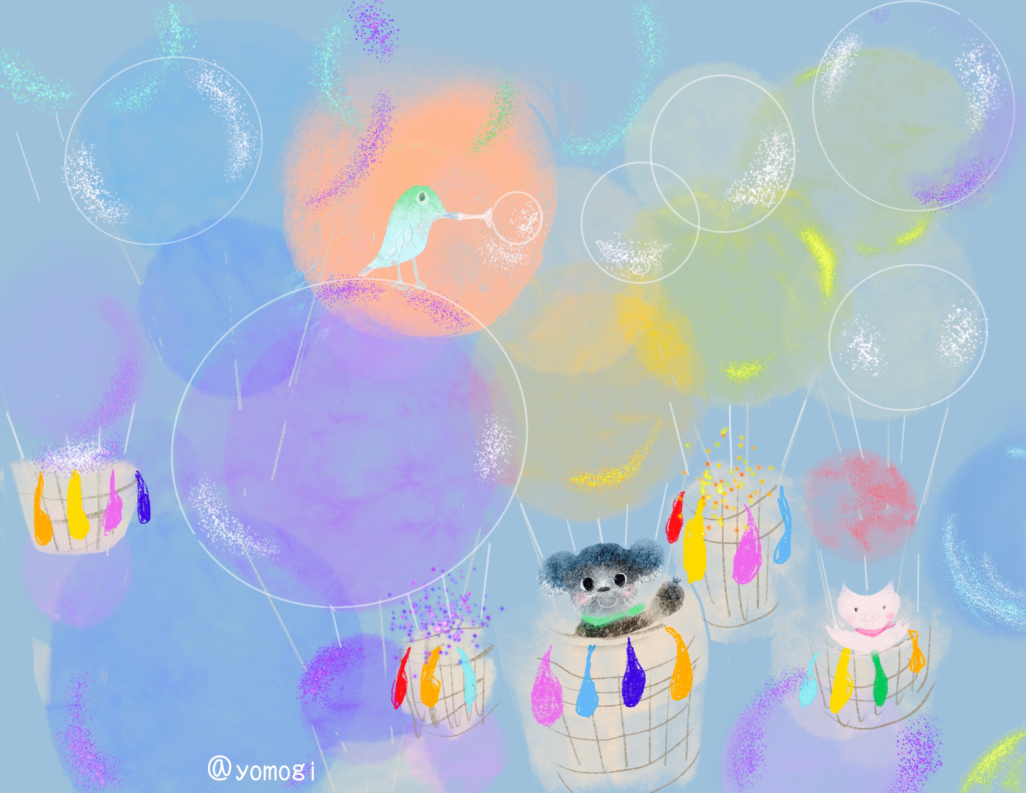 デジタルイラスト シャボン玉 よもぎの背のび Note